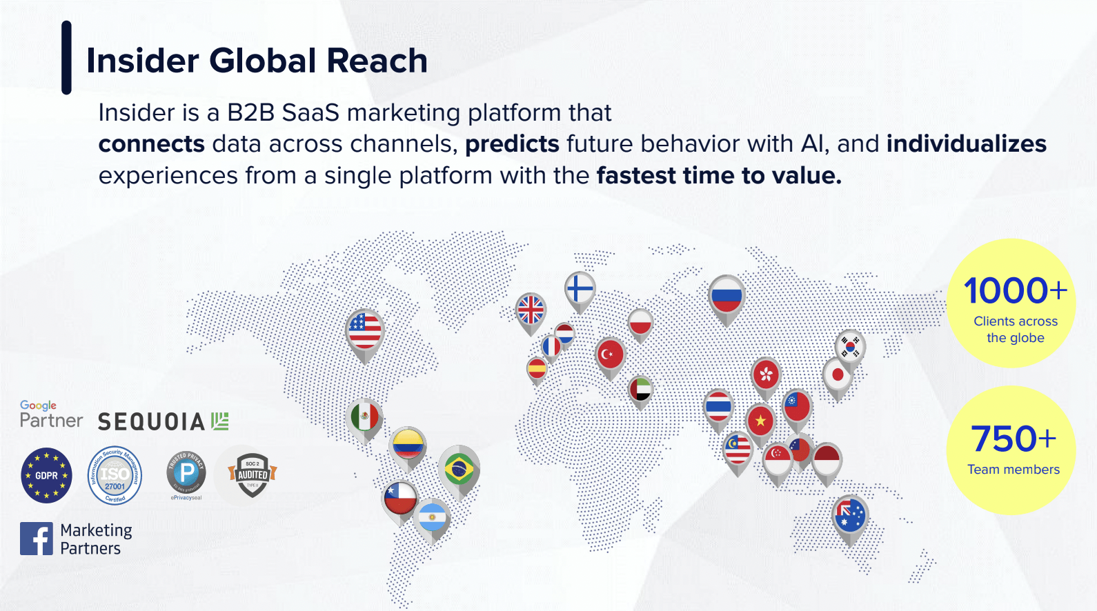 Bugün pazarlama tarafında global bir kariyer yapmak istiyorsanız, yazılım tarafında donanım ve e-ticaretin ötesinde 26 farklı ülkede sunulan, ihraç edilen bir ürünün kodlamasını yapmak istiyorsanız, satış tarafında Marks & Spencer'dan British Airways'e dünyadaki en global markalara satış yapmak istiyorsanız, 41 farklı milletten çok farklı deneyimlere sahip insanlarla çalışmak istiyorsanız ve bunu yurtdışına gitmeden yapmak istiyorsanız Insider doğru yer.