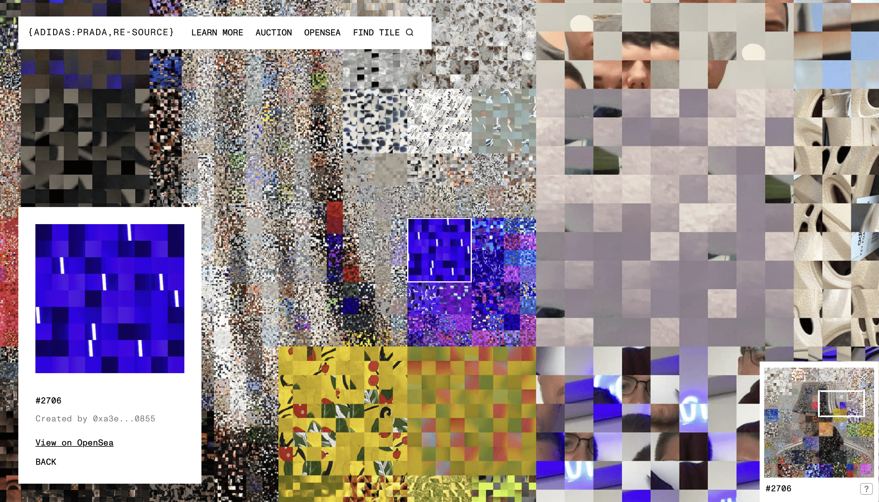 Takipçilerini açık metaverse NFT projesine davet eden Adisas ve Prada, takipçilerin anonim fotoğraflar ve dijital içeriklerle projeye katkıda bulunmasını teşvik etti. Topluluk tarafından üretilen 3 binden fazla eser, NFT olarak mint edildi. Her bir NFT tek bir kolaj çalışmasının bir parçası olarak konumlandu. Kolaj ise New York'lu sanatçı ve yazılımcı Zach Lieberman tasarlandı.