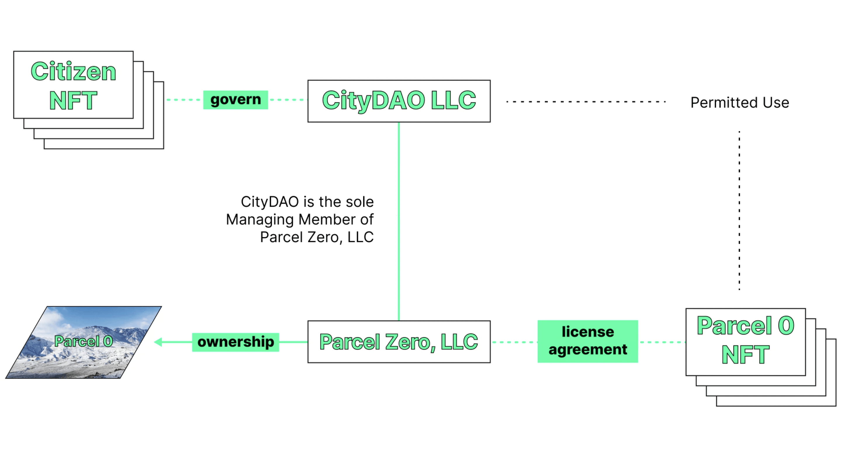 Paylaşılan bilgilere göre; şirketin sahiplendiği Parcel 0'nun yasal parsel sicil numarası (PIDN) ise 03570301302001 in Park County, Wyoming. Parcel Zero, LLC, Parcel 0'nun sahibi olarak konumlanacak, bu noktada CityDAO, LLC de Parcel Zero, LLC'nin sahibi konumunda olacak. Arsanın emlak vergisi ve sigortası Parcel Zero, LLC tarafından ödenecek.