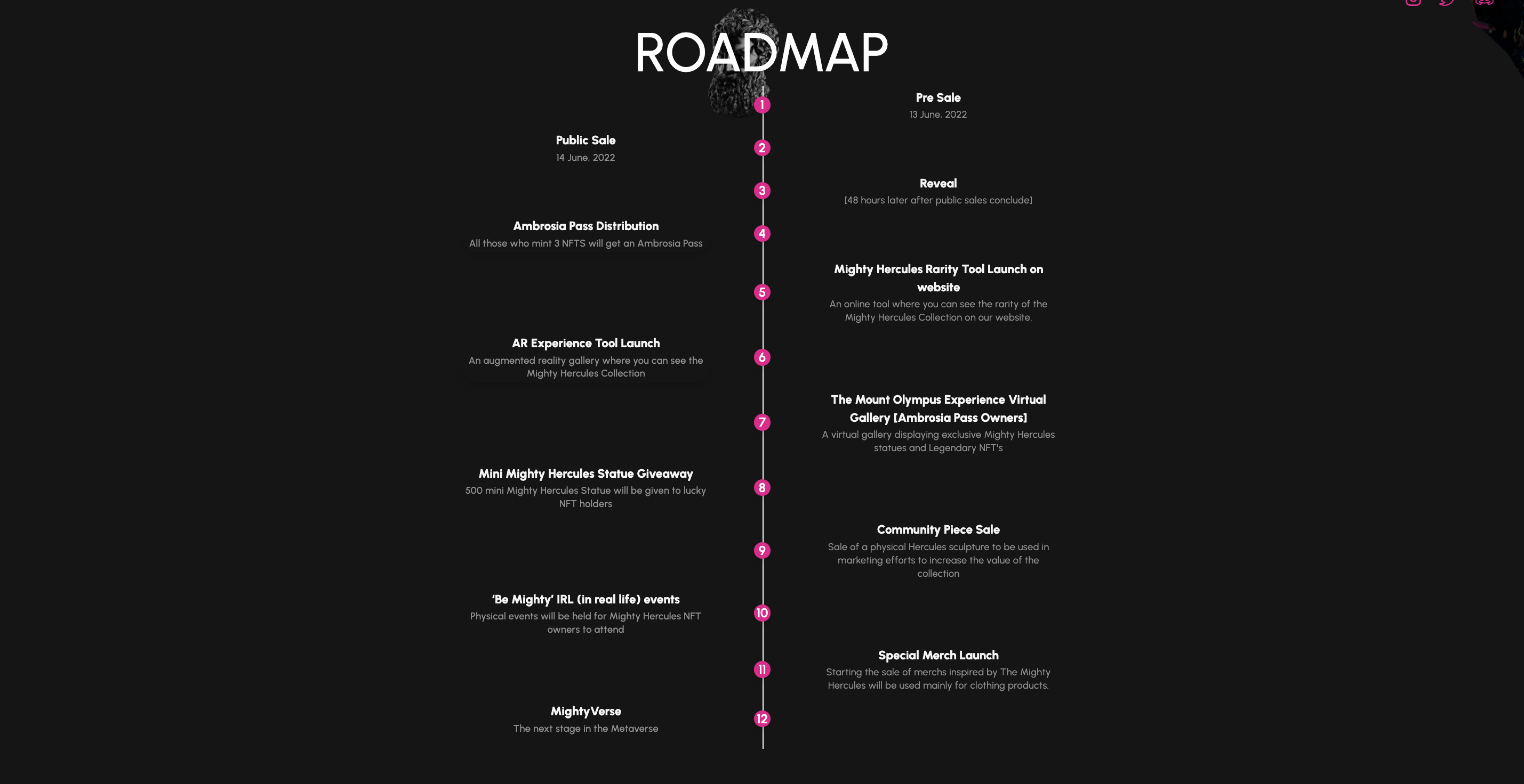 Yol haritasında yer alan bilgilere göre, ilerleyen dönemde 500 mini Mighty Hercules Heykeli de koleksiyonerlerle buluşacak. Buna ek olarak topluluğun gelirlerine katkıda bulunacak heykel satışı, özel fiziksel etkinlikler ve The Mighty Hercules giyim ürünleri de yol haritasında yer alıyor.
