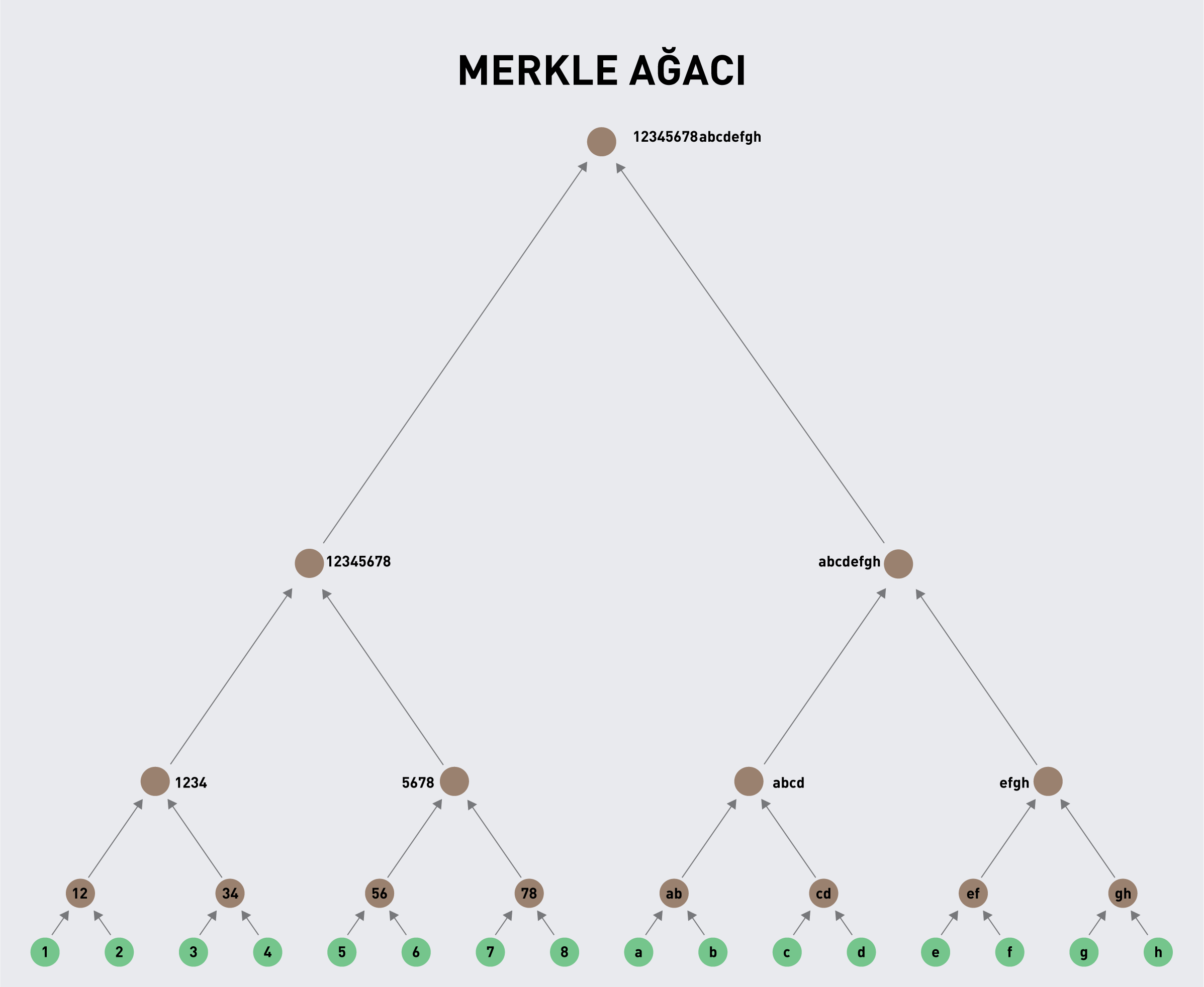 Şekildeki yeşil alanları (yaprakları) verinin 256 KB’lık parçaları olduğunu düşünelim. En üstteki kahverengi parça (kök) ise dosyanın bütün halini ifade ediyor. Bu şemayı aynı zamanda bir dosyanın eski versiyonları veya bir node’un içeriği olarak da düşünebiliriz.