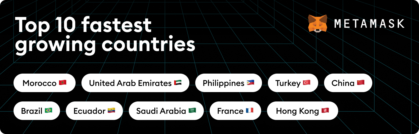 MetaMask en çok kullanıma sahip ülkelerin haricinde en hızlı büyüyen ülkeleri de paylaştı. Türkiye, bu 10'da da yerini alıyor.