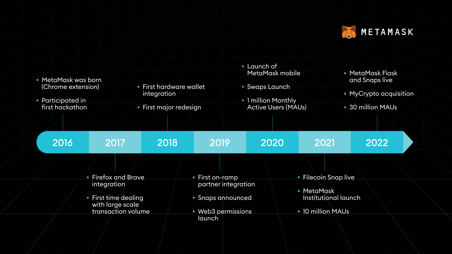 Temmuz 2016'da Dan Finlay ve Aaron Davis tarafından kurulan MetaMask, Mart 2022'de 30 milyon aylık aktif kullanıcıyı aştığını duyurmuştu. MetaMask'ın kurucuları, yıldönümünü kutlamak ve cüzdanın bugüne kadar elde ettiği başarıyı paylaşmak için, girişimin başlangıç hikayesi hakkında detaylara yer verdiler.