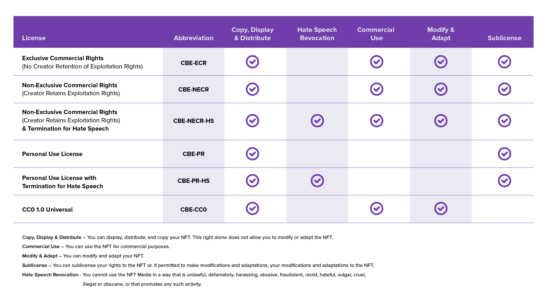 Bu noktada 6 farklı lisans alternatifi sunuyor. Bunlar sırasıyla, Exclusive Commercial Rights with No Creator Retention, Non-Exclusive Commercial Rights, Non-Exclusive Commercial Rights with Creator Retention & Hate Speech Termination, Personal License, Personal License with Hate Speech Termination ve CC0 olarak öne çıkıyor.