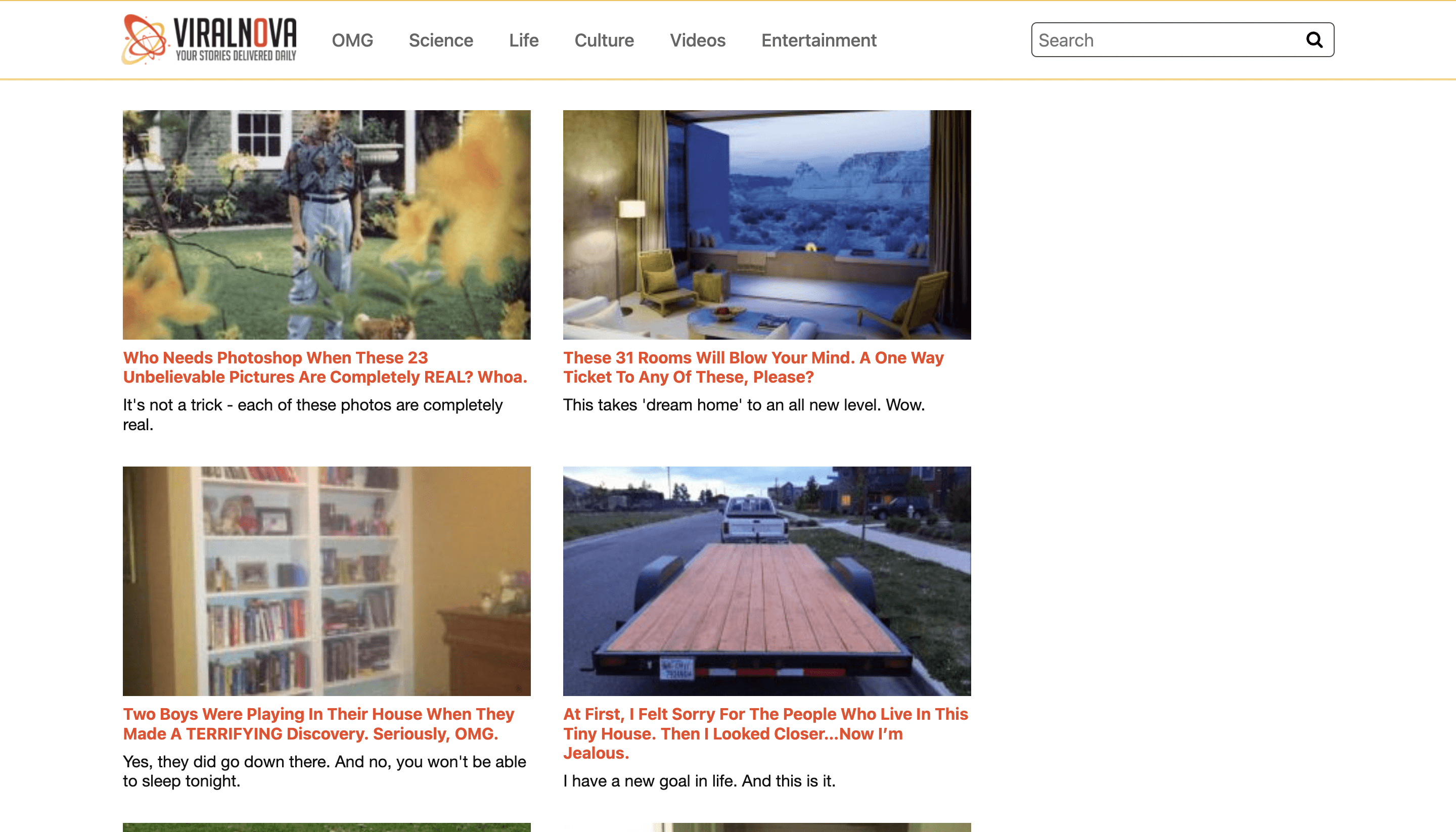 Scott Delong tarafından kurulan içerik sitesi Viral Nova, internetteki viral içerikleri derliyor. Popülerliğinin zirvesinde olduğu dönemde yılda 5 ila 10 milyon dolar gelir elde ediyordu ve aylık 100 milyon okuyucuya sahipti. Viral Nova, hiç yatırım almadığı gibi herhangi bir çalışana da sahip değildi.