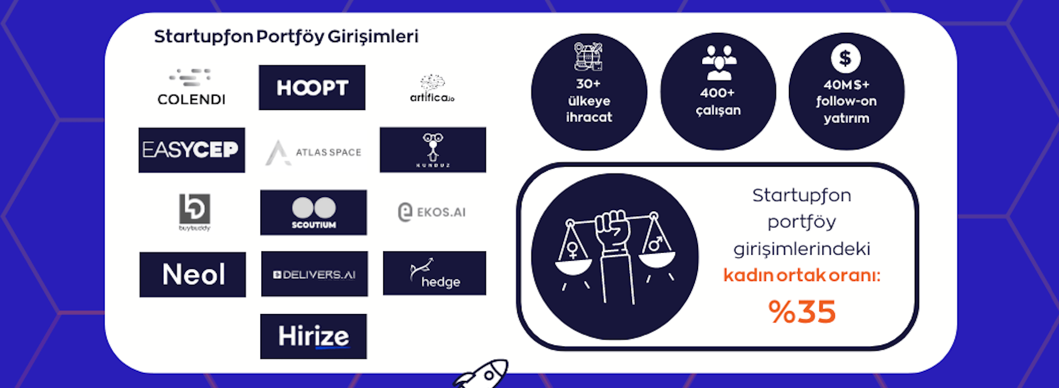 Startupfon portföyünde yer alan girişimlerin kadın ortak oranının yüzde 35 olduğunu ve toplamda 30’dan fazla ülkeye ihracat yaptıklarını da ekleyelim. Paylaşılan verilere göre Startupfon, sadece 1 senenin sonunda 2,6 çarpana ulaştı.