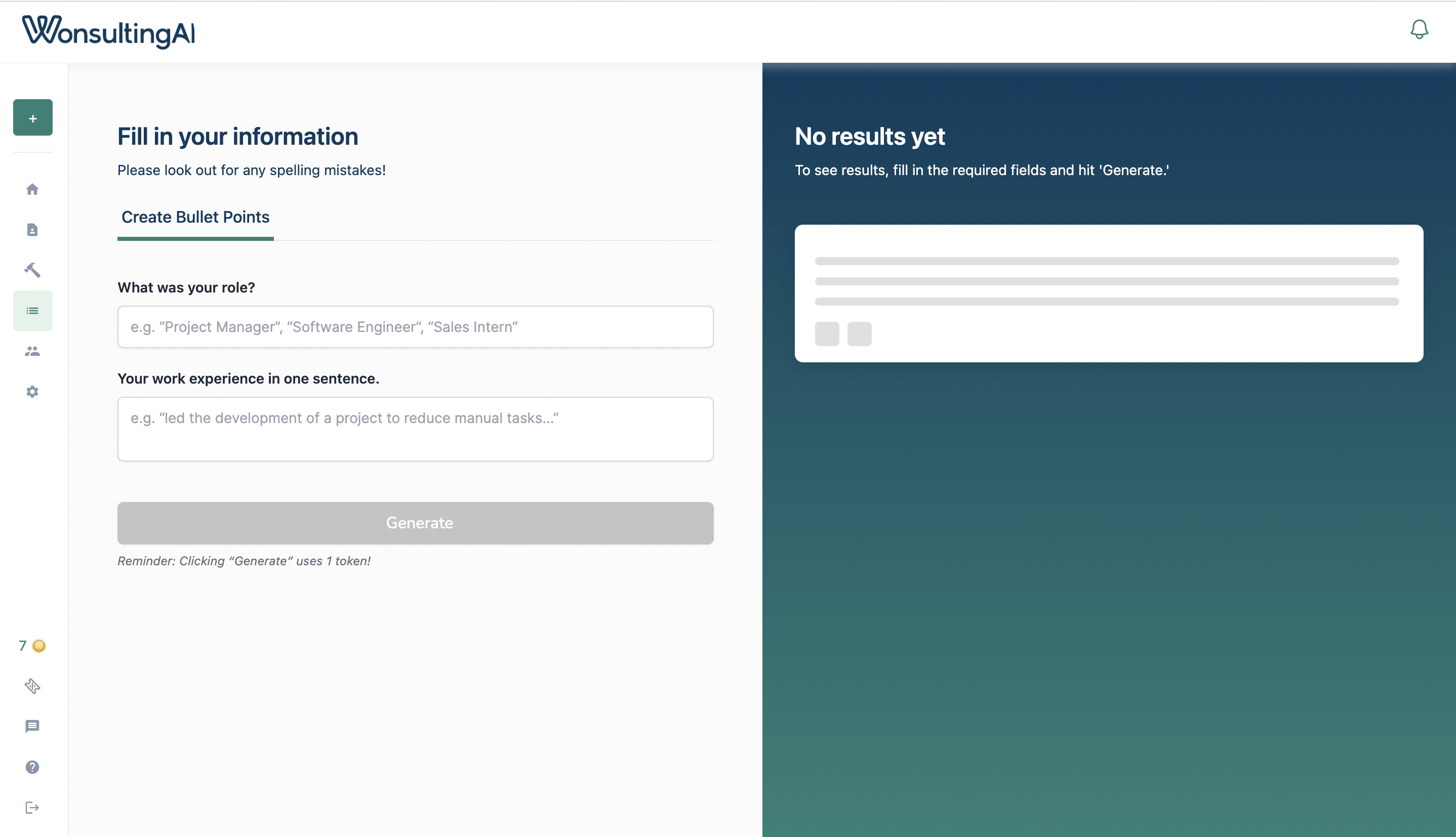 Wonsulting AI çatısı altında aynı zamanda özgeçmiş geliştirmenizi sağlayan Resume AI da yer alıyor. Resume AI ile bir şablon üzerinde öz geçmişinizi kolayca oluşturabiliyorsunuz. Bunun yanı sıra mevcut özgeçmişinizi platforma yükleyerek hataları düzeltmesini isteyebiliyorsunuz.