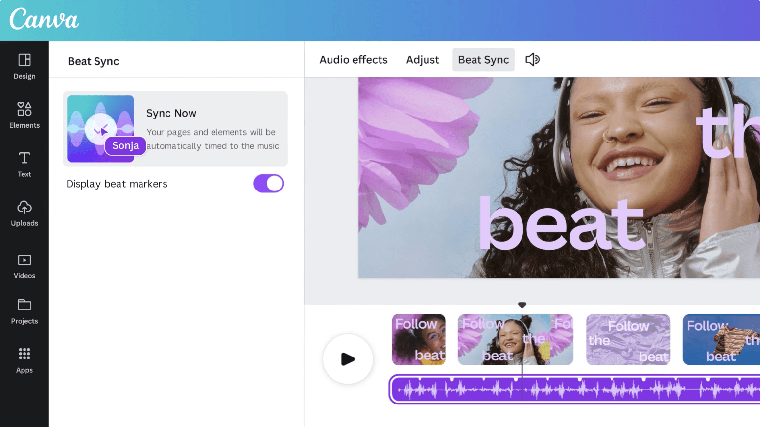 Canva'nın bir diğer özelliği ise Beat Sync. Herhangi bir manuel düzenleme yapmadan farklı video klipler veya görüntüler arasında geçiş yaparak video çekimlerini bir şarkıya göre otomatik olarak düzenleyebiliyor. Bu özellik, bir tasarımdaki herhangi bir metni otomatik olarak 100'den fazla farklı dile çeviriyor. Canva, kendi sistemlerini oluşturmanın yanı sıra bu özelliklerin temeli olarak farklı yapay zeka modellerinin bir karışımını kullandığını söylüyor.