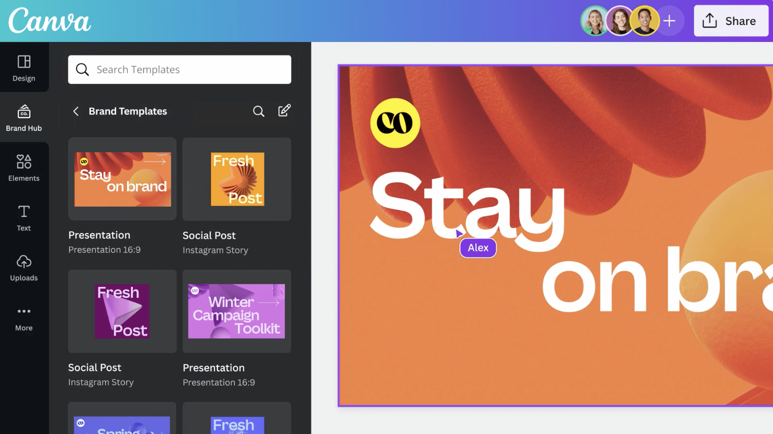 Canva'nın ilk güncellemesi Visual Worksuite'e eklenen Brand Hub özelliği. Brand Hub, kullanıcıların kuruluşlarının görsel kimliğiyle tutarlı kalmasına yardımcı olacak araçlar sunuyor. Bu sayede kullanıcılar, logolar, yazı tipleri, renkler ve tasarım yönergeleri gibi şirkete özgü varlıklar içeren bir Marka Kiti oluşturabiliyor. Bu sayede belirli etkinlikler, kampanyalar ve projeler için varlıklar bir arada gruplandırılabiliyor; markalı yeniden kullanılabilir şablonlar oluşturulabiliyor.