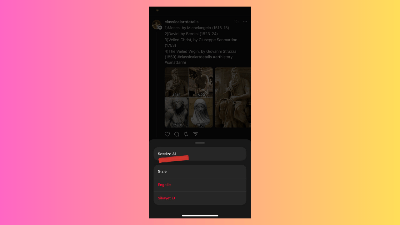 Bir hesaptaki içeriği tekrar görmek istemiyorsanız, akış sayfasında kişinin yanında bulunan üç noktalı menüye ve ardından “Sesi Kapat”a dokunmanız yeterli.