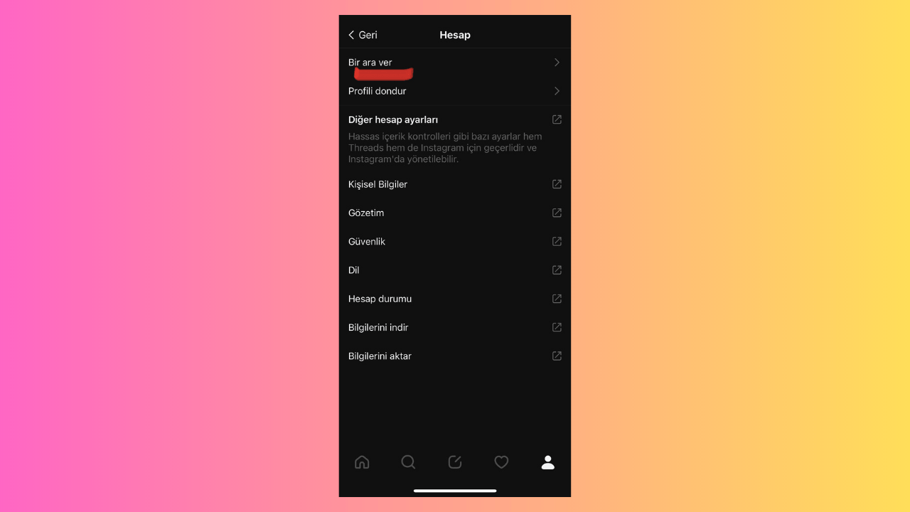 Threads kullanımını azaltmak için "bir ara ver" seçeneğini kullanabilirsiniz. Bunun için izlenmesi gereken adımlar şu şekilde: Profil - Ayarlar - Hesap - Bir ara ver. Daha sonra buradan Threads'te tek seferde maksimum ne kadar vakit geçirmek istediğinizi seçebiliyorsunuz.
