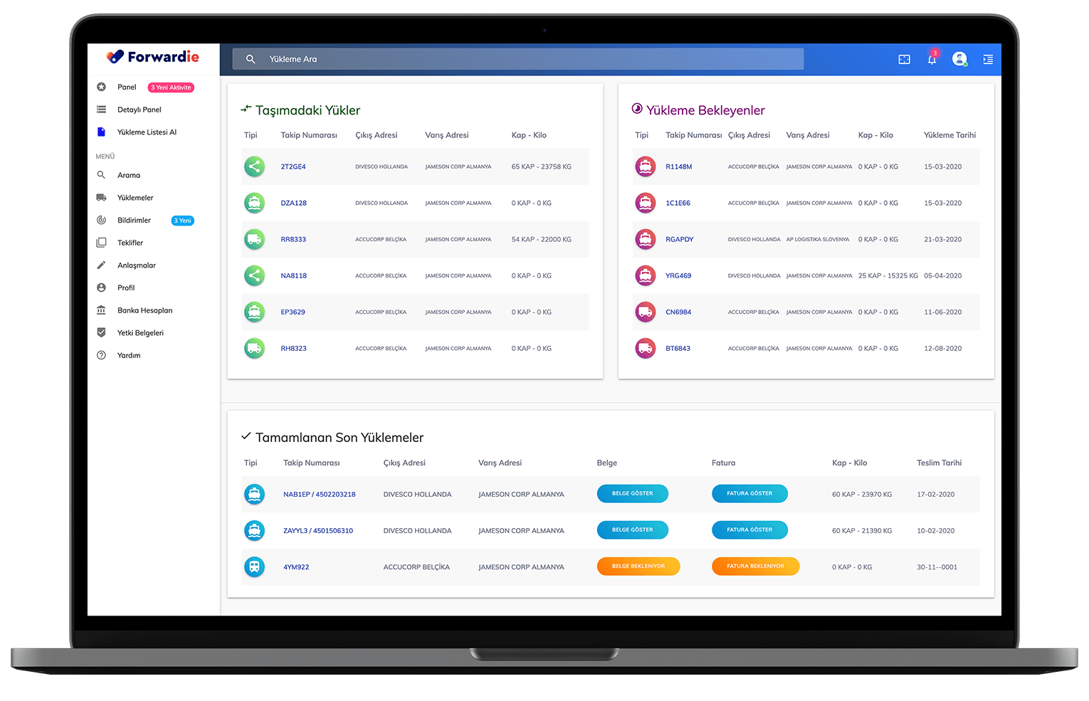 Sunduğu çözüm ile birlikte firmaların lojistik süreçlerini tek adresten yönetebilmesini sağlayan Forwardie, müşterilerinin lojistik süreçlerini yönetebileceği ve yüklerini organize edebileceği bir dijital lojistik organizatörü olarak hizmet veriyor. Forwardie kullanıcıları, bilgisayar ve cep telefonu üzerinden yüklerinin nerede olduğunu gerçek zamanlı olarak da takip edebiliyor.