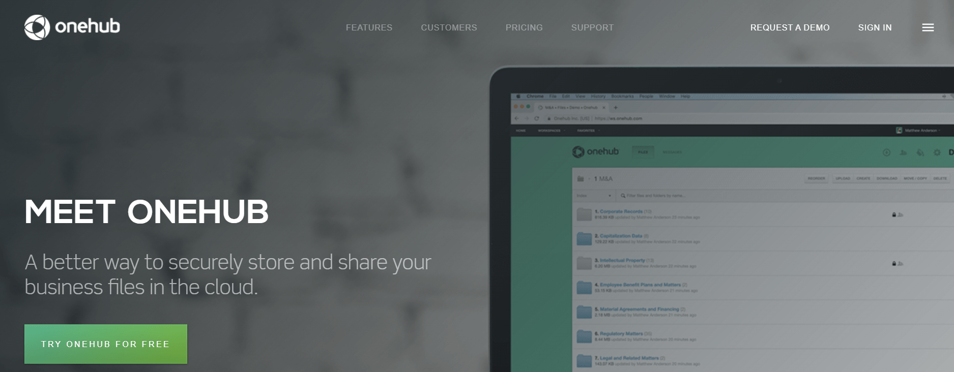 Onehub, işletmelerin dosyaları herhangi bir yerden güvenli bir şekilde depolamasına, paylaşmasına ve üzerinde müşterek çalışma yapmasına olanak tanıyan bulut tabanlı bir belge yönetim sistemi. Ürün, rol tabanlı erişim denetimleri, etkinlik izleme ve özel markalama seçenekleri gibi kurumsal düzeyde özellikler sağlıyor.