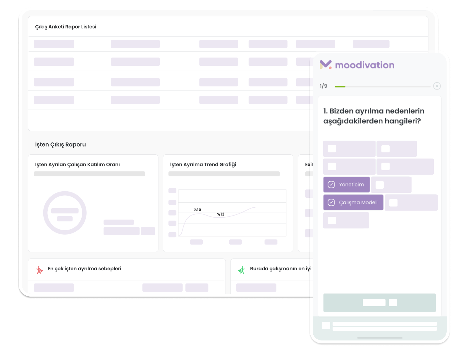 Toplamda 16 hazır anket modülü ile şirketlerin, çalışan bağlılığı, liderlik, çeşitlilik, kapsayıcılık, eğitim değerlendirme gibi bir çok konuda hazır setlere erişmesini ve anında raporlara ulaşmasını sağlıyor.