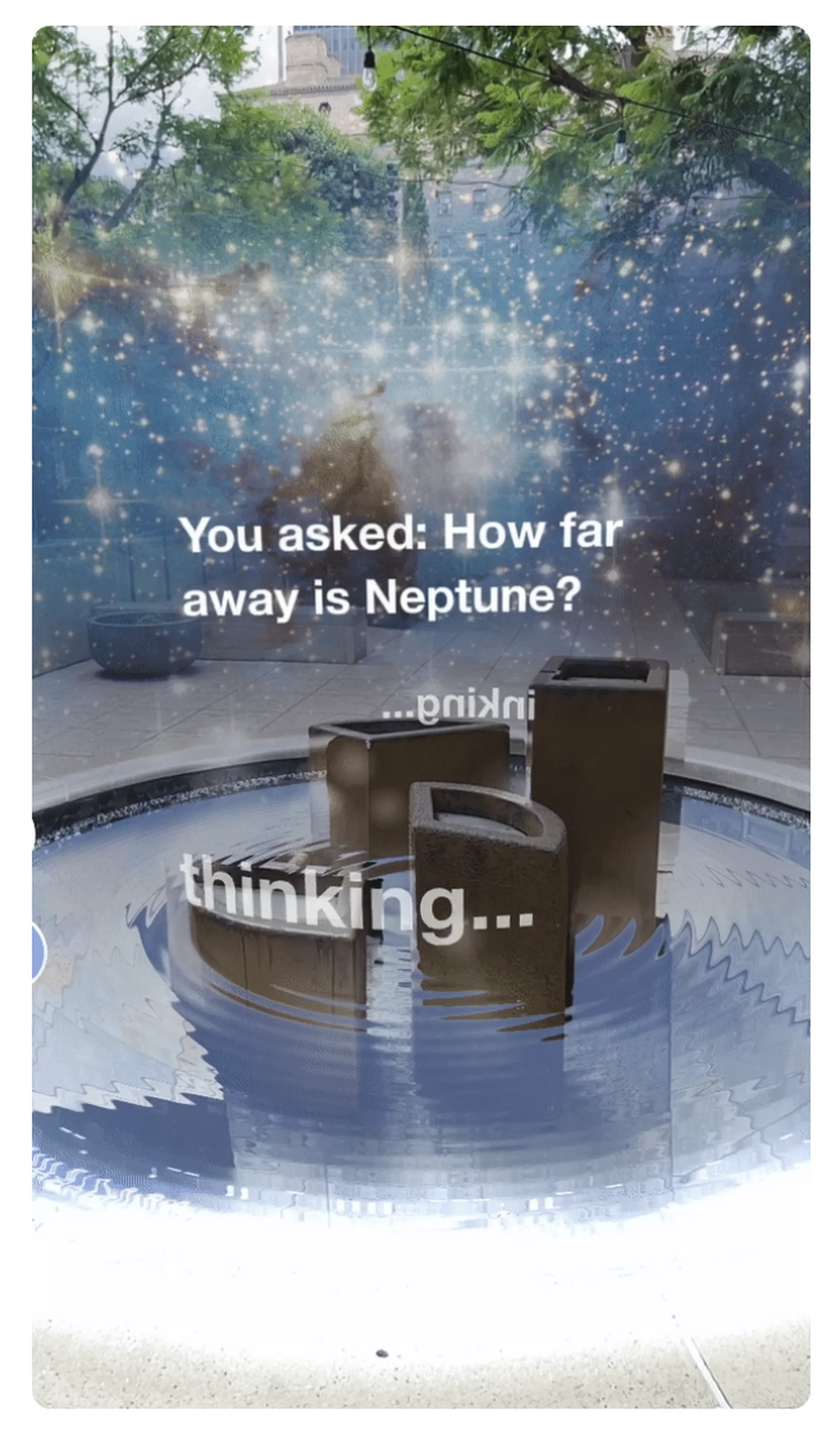 Lens Studio'nun yeni beta sürümünde geliştiriciler ChatGPT desteğiyle artırılmış gerçeklik filtreleri üretebilecek. Örnek olarak sunulan lensler arasında güneş sistemi temalı bir lens de tanıtıldı. Bu lensi kullanan kişi "Neptün ne kadar uzaklıkta?" sorusunu yöneltti ve lensin üzerinde birkaç saniye içinde bu sorunun cevabı belirdi. Bu yeni özellik kapsamında quiz'ler ve rastgele veriler sunan içerikler hazırlamak da mümkün.