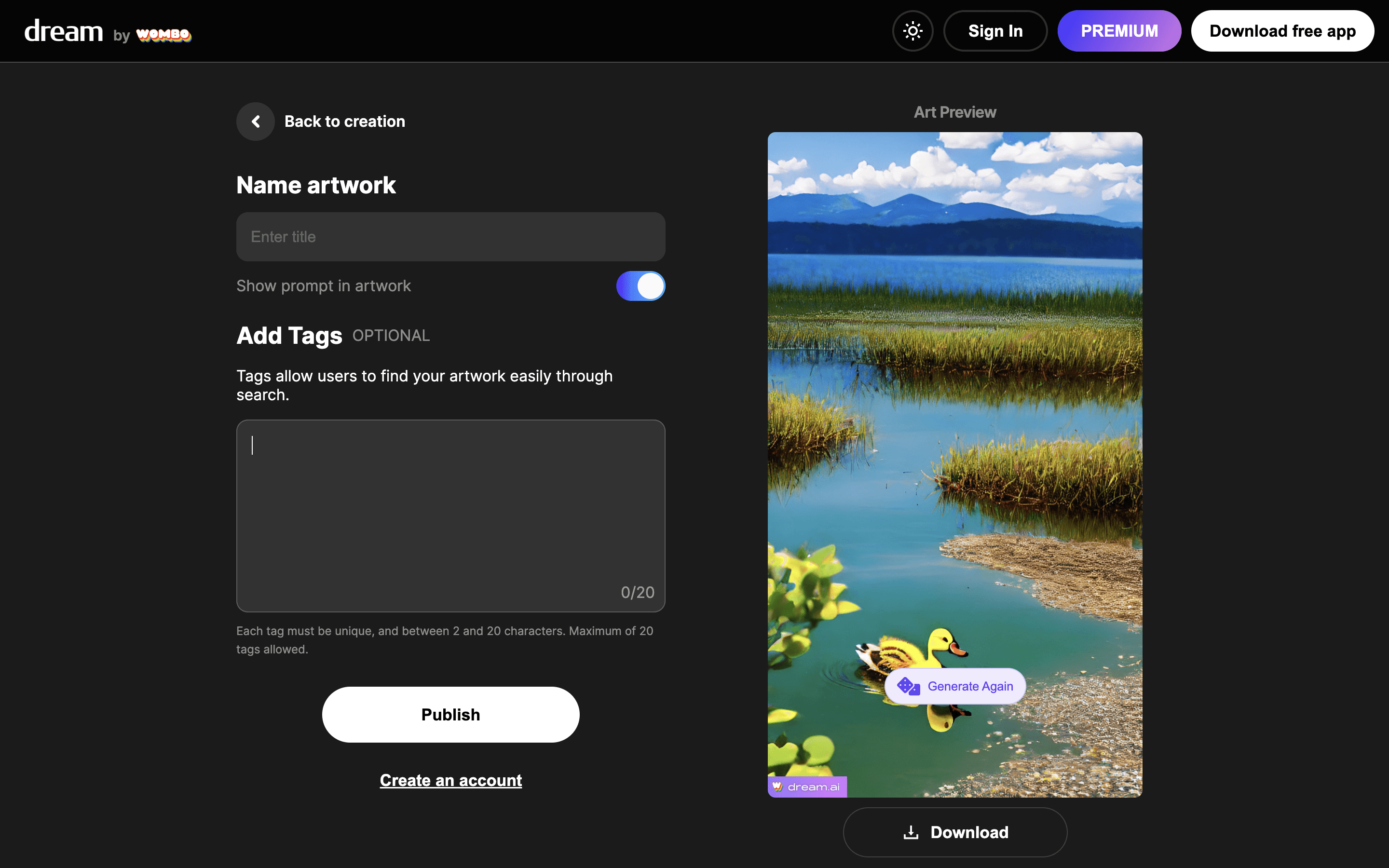 Hem web de hem de mobilde kullanılabilen Dream, bazı özellikleri ücretsiz sunuyor ancak daha geniş kapsamda kullanım için Pro üyelik talep ediyor. Yine de platformun oldukça kullanışlı olduğunu söylemek mümkün. Ben bu sefer de "a duckling is swimming in the magical lake" komutu ile bir görsel oluşturmak istedim, ancak pek hayalimdeki gibi bir görsel olmadı. Yani daha büyülü bir görsel beklerken adeta Dalyan'dan fotoğraf paylaşılmış gibi hissettim. Çok büyük beklentileriniz yoksa Dream de bu alanda bir alternatif sunacaktır diyebilirim.