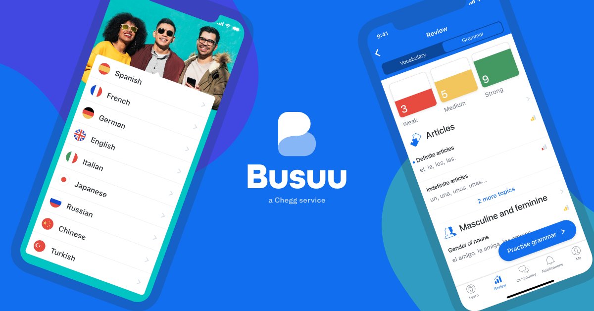 2008 yılında Bernhard Niesner ve Adrian Hilti tarafından kurulmuş bir dil öğrenme platformu Busuu, kullanıcının dil becerilerini geliştirmeyi sağlayacak çeşitli dil seviyelerine yönelik dersler sunuyor. A1 (başlangıç seviyesi) ile B2 (orta seviye) arasındaki dil kurslarına, herhangi bir yerden ve herhangi bir zamanda mobil cihazlarınızdan veya internet üzerinden eş zamanlı olarak erişilebiliyor.