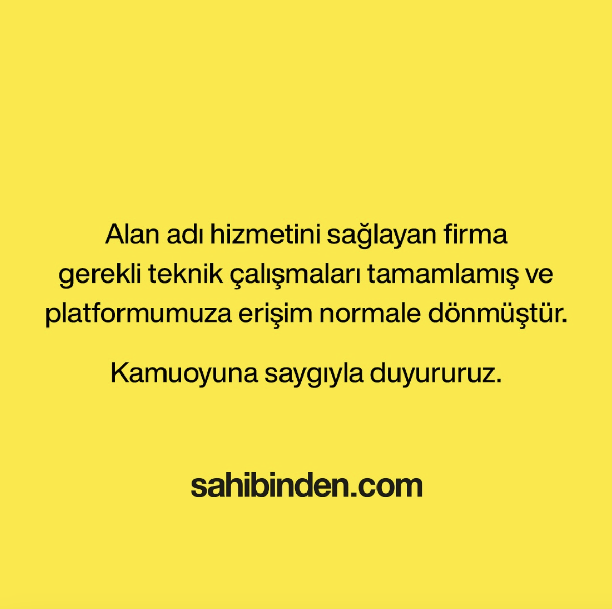 Sahibinden.com, sitenin açılması ile ilgili bir açıklama yapsa da problemin nedenine dair bir açıklama yapmadı.