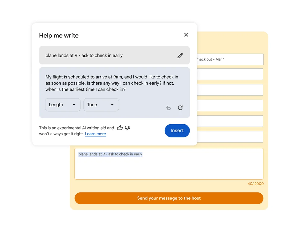 Help me write, dijital anketleri ve yorumları doldurmak, ürün bilgileri hakkında bilgi almak veya online satılan ürünler için açıklamalar hazırlamak gibi kısa biçimli içerikler için yazma önerileri sağlamaya odaklanıyor. Google, aracın bulunduğunuz web sayfasının bağlamını anlayarak ilgili bilgileri önerilerine dahil edebildiğini söylüyor.