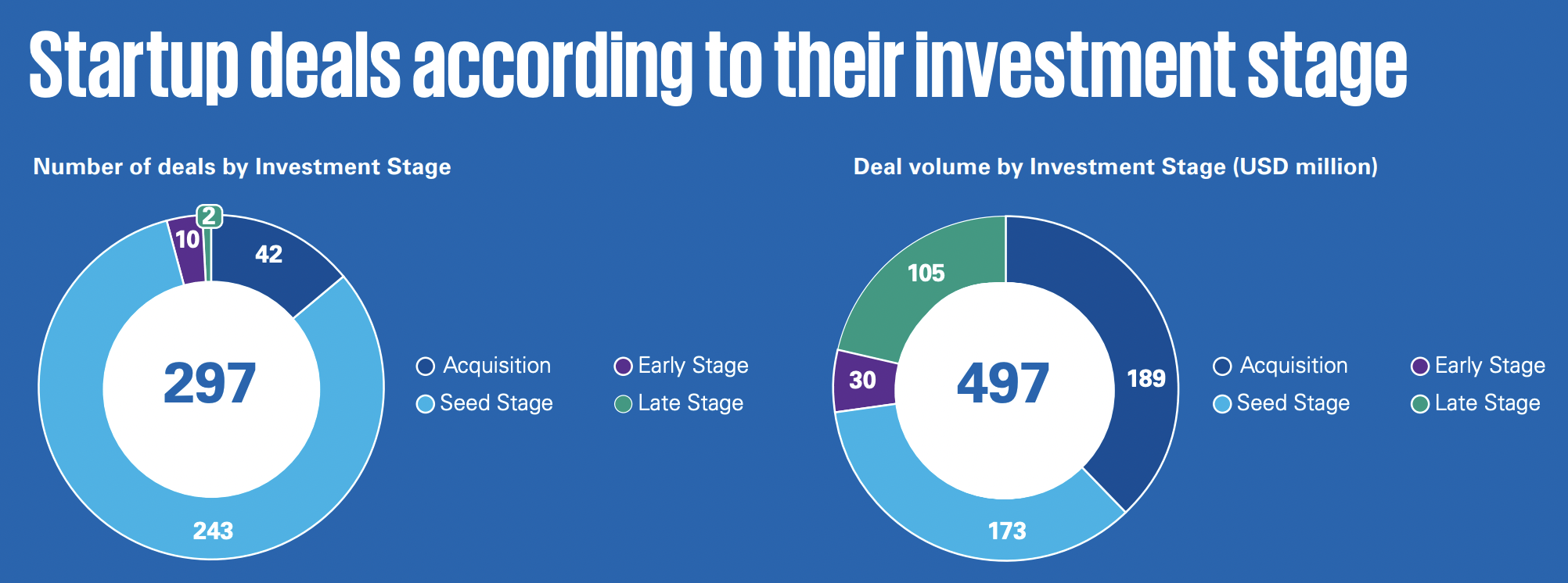 2023 yılında, satın alma işlemlerinin toplam işlem hacmi 189 milyon dolar oldu. Tohum yatırımların ise toplam işlem hacmi 173 milyon dolar seviyesindeydi. Satın alma işlemleri, Türkiye'deki girişim ekosistemindeki yatırım hacminin yüzde 38'ini oluşturdu. Satın alma işlemlerini yüzde 35 ile tohum aşama işlemleri takip etti.