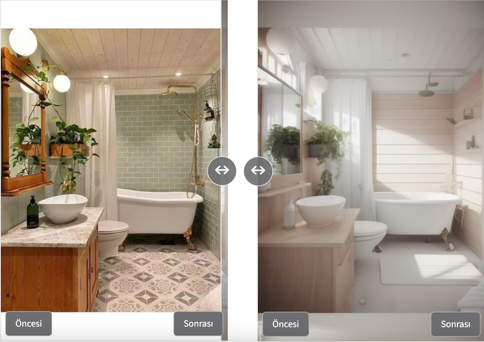 Hangi mimari stilin sizi yansıttığı sorusu için bohem, country, endüstriyel, iskandinav, klasik, modern, minimal ve sahil tarzı cevaplarından birisini vermeniz gerekiyor. Seçiminizi yaptıktan sonra hangi renklerin ve renk tonlarının tarzınıza uygun olduğu soruluyor, bunun ardından tercih edeceğiniz materyal ve dokular soruluyor. Son olarak, ekleyebileceğiniz notların ve tüm seçimlerin ardından karşınıza öncesi ve sonrası formatı ile yeni tasarlanan banyonuz çıkıyor.