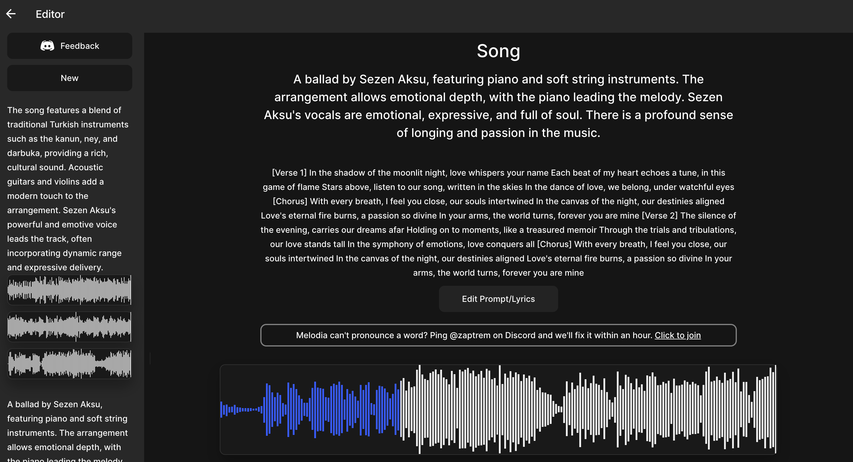 Yapay zeka müzik editörü Sonauto, metinsel komutları şarkı sözlerine ve dilediğiniz tarzda şarkılara dönüştürüyor. Melodia isimli temel model sayesinde kullanıcılar müzik bilgisine ihtiyaç duymadan şarkı üretebiliyor.