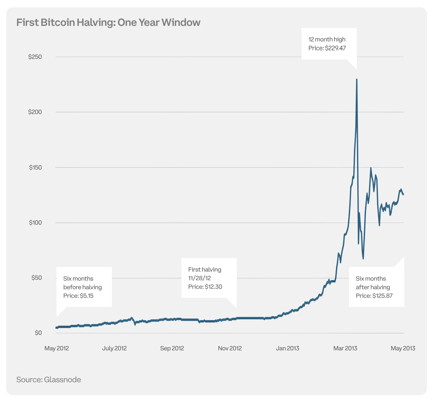 İlk yarılanmadan önceki altı ay içinde yüzde 139 artışla işlem gören Bitcoin, yarılanmadan sonraki altı ay içinde yüzde 923 yükseldi. Öte yandan Bitcoin'in bu yarılanmadan altı ay önce 5 doların biraz üzerinde işlem gördüğünü belirtmek mühim. O dönemde henüz erken aşamalarında olan Bitcoin, sonraki yarılanmalarda buna benzer güçlü bir performans göstermedi.