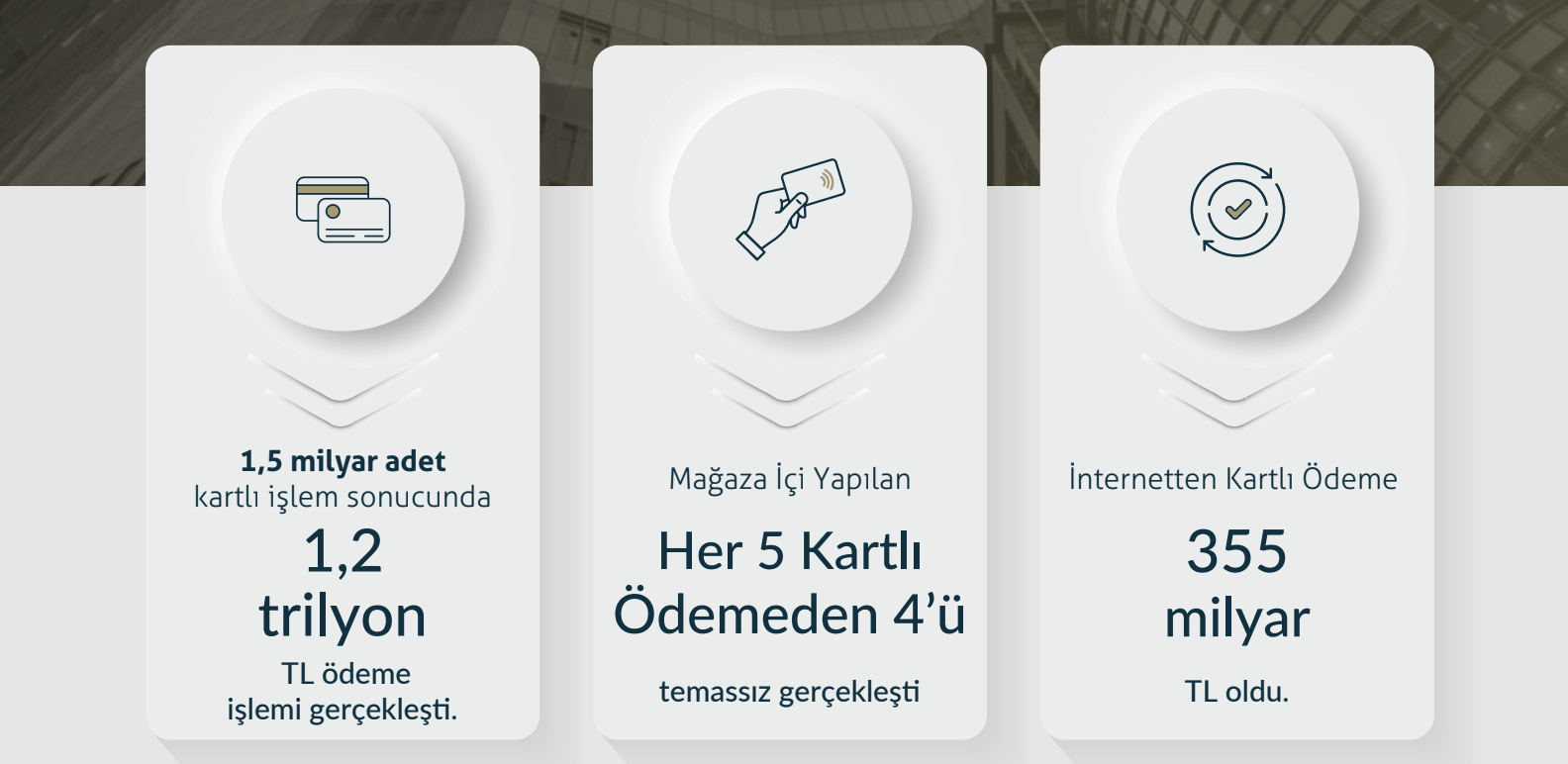 Geçen yılın aynı dönemine göre yüzde 38 artan kartlarla yapılan temassız ödeme adedi, 916 milyon adet oldu. Temassız ödeme tutarının ise geçen yılın aynı dönemine göre yüzde 155 arttığını ve 327,2 milyar TL'ye ulaştığını belirtelim. Son olarak Mart ayında mağaza içi yapılan her 5 kartlı ödemeden yaklaşık 4’ü temassız gerçekleşti.