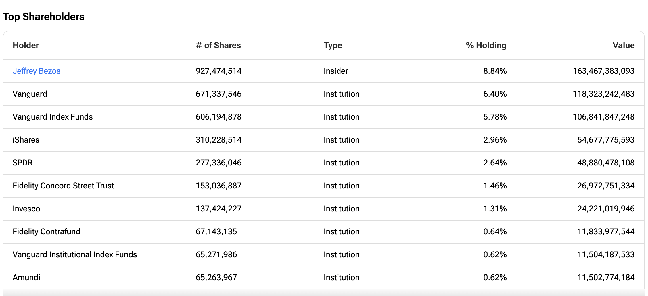 Bezos'un elinde bulundurduğu hisseler