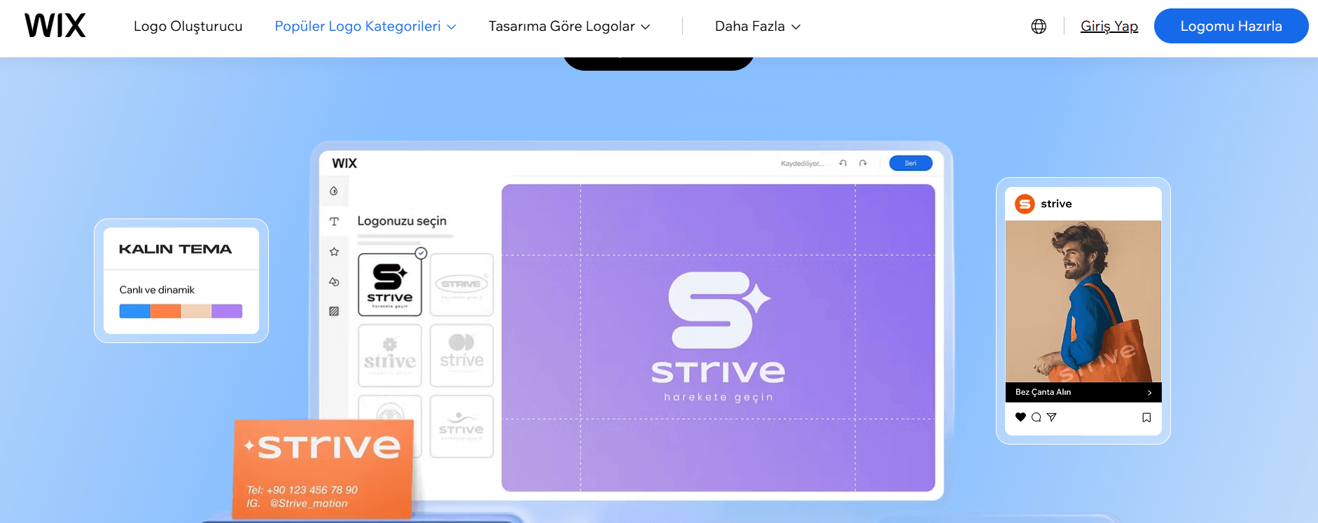 Wix Logo Maker, kullanıcı tercihlerini analiz ederek profesyonel logolar oluşturuyor. Kullanıcılar marka adlarını ve istedikleri tasarım stilini belirledikten sonra sistem, binlerce özgün logo önerisi sunuyor. Oluşturulan logolar Wix’in entegre marka araçlarıyla birleştirilerek sosyal medya, kartvizit veya broşür gibi materyallere kolayca uygulanabiliyor. Bu sayede markalar, dijital ve basılı tüm mecralarda görsel tutarlılığını koruyabiliyor. Wix Logo Maker, logo ve marka kiti oluşturma özelliklerini Wix’in abonelik paketlerine dahil ediyor ve kullanıcıların profesyonel markalaşma sürecine geçmesini sağlıyor.