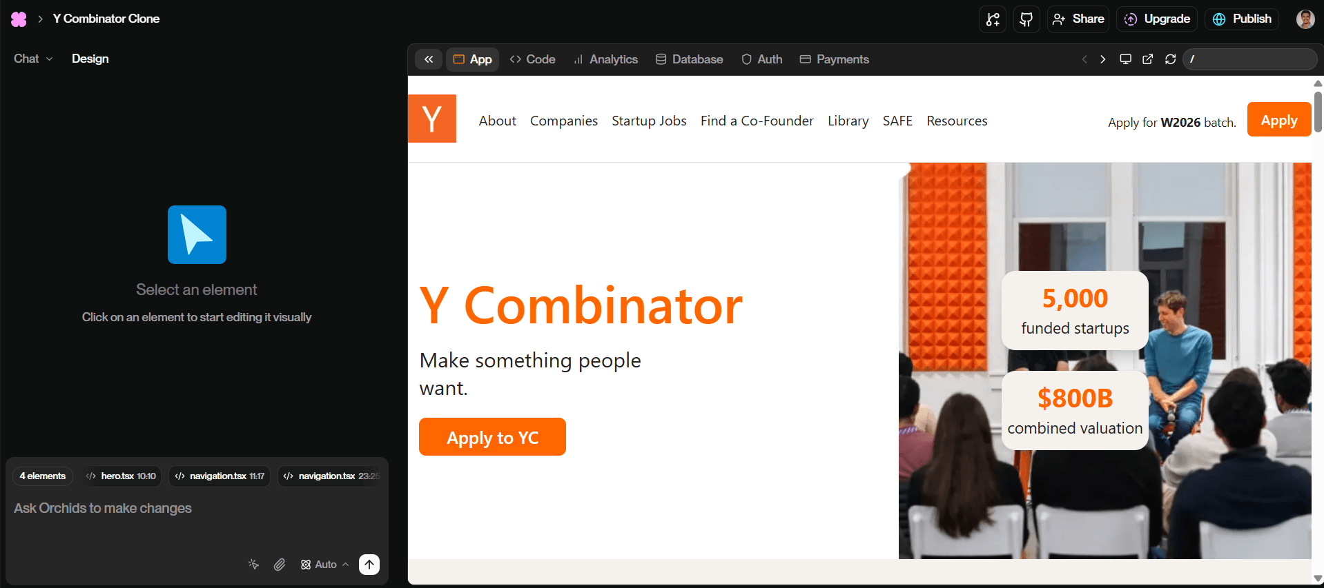 Orchids, kendisini yapay zeka destekli çok yönlü yazılım mühendisi olarak konumlandırmasıyla öne çıkıyor. Platform, prototipleme, tasarım ve geliştirme aracı olarak ekiplerin fikirden canlı ürüne giden süreci tek bir ortamda yönetmesini sağlıyor. Platform üzerinden prototipler, uygulamalar ve web siteleri oluşturuluyor, bu süreçte yapay zeka destekli üretim akışları hız kazandırıyor. Ürün, çok adımlı üretim döngüsünü tek arayüzde toparlayarak ekiplerin daha kısa sürede çalışmasını hedefliyor.