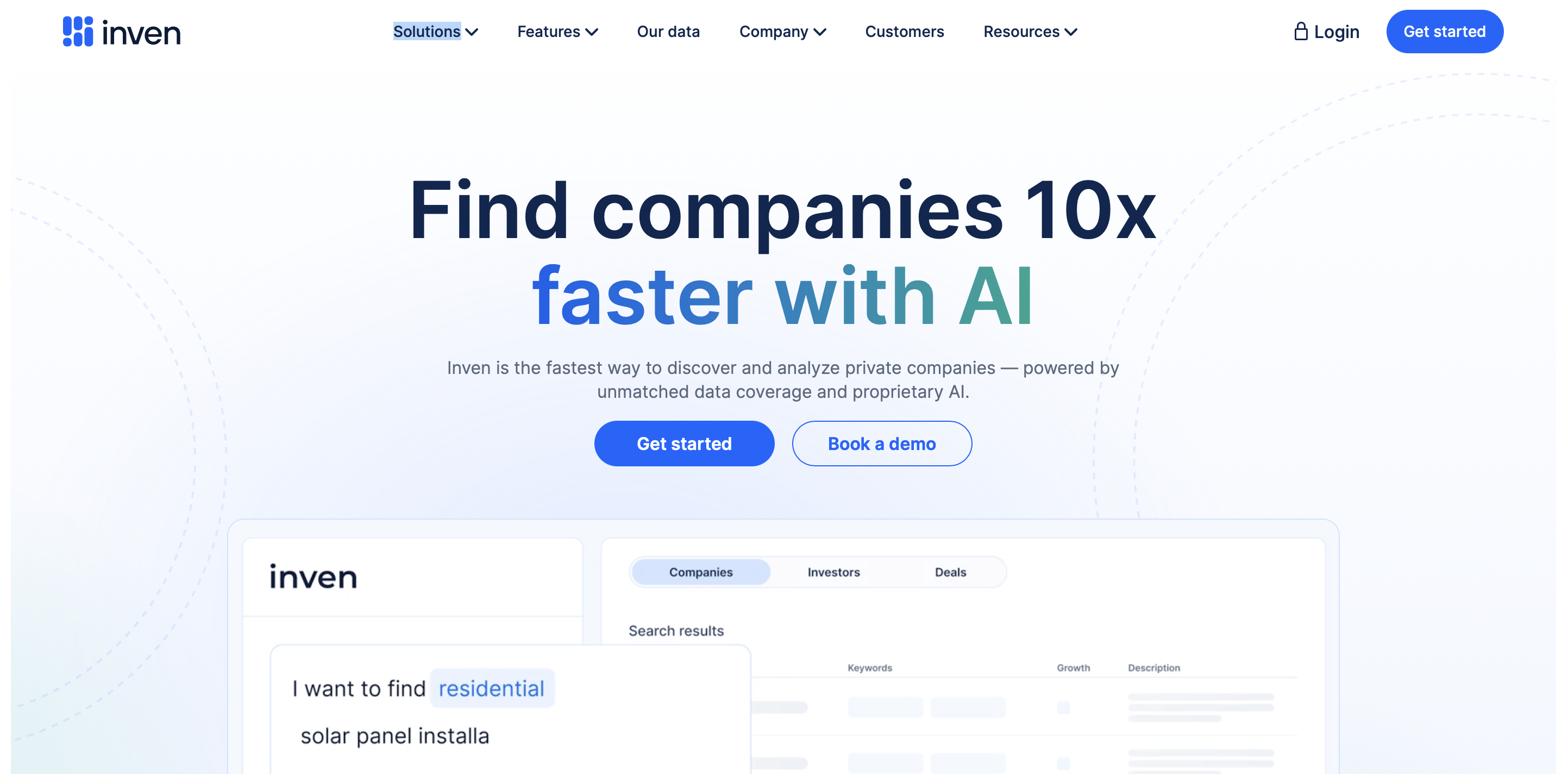 Inven, özel şirketleri bulmayı 10 kat hızlandıran yapay zeka destekli şirket keşif ve analiz platformu olarak öne çıkıyor. Kullanıcı yalnızca aradığı şirket profilini ve kriterleri tarif ediyor, Inven’in doğal dil işleme ve özel algoritmaları milyonlarca kaynaktan veriyi tarayıp ilgili şirketleri, işlemleri ve kontakları tek bir rafine listede topluyor. Klasik veri tabanlarının aksine, alt ve orta pazar segmentlerinde niş sektörler dahil şirketlerin ne iş yaptığı sorusuna göre eşleştirme yapıyor. M&A ekipleri ve yatırımcılar için deal sourcing sürecini büyük ölçüde otomatikleştiriyor. Inven, kurumsal müşterilere özel, teklif bazlı lisans paketleriyle fiyatlandırılıyor.