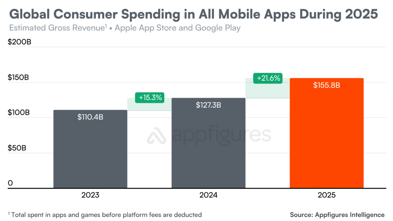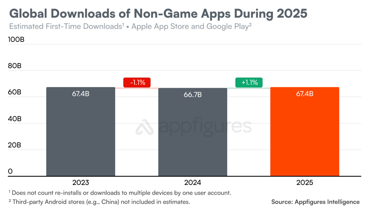 Mobil uygulama ekonomisinin 2025’te ilginç bir eşikten geçtiğini söyleyebiliriz. Uygulama indirme sayıları beşinci yıl üst üste gerilerken, gelir tarafında tablo tersine döndü. Appfigures’ün yıllık raporuna göre App Store ve Google Play üzerinden yapılan toplam indirme sayısı 2025’te 106,9 milyara düştü. Buna karşın tüketici harcamaları yüzde 21,6 artarak 155,8 milyar dolara ulaştı.