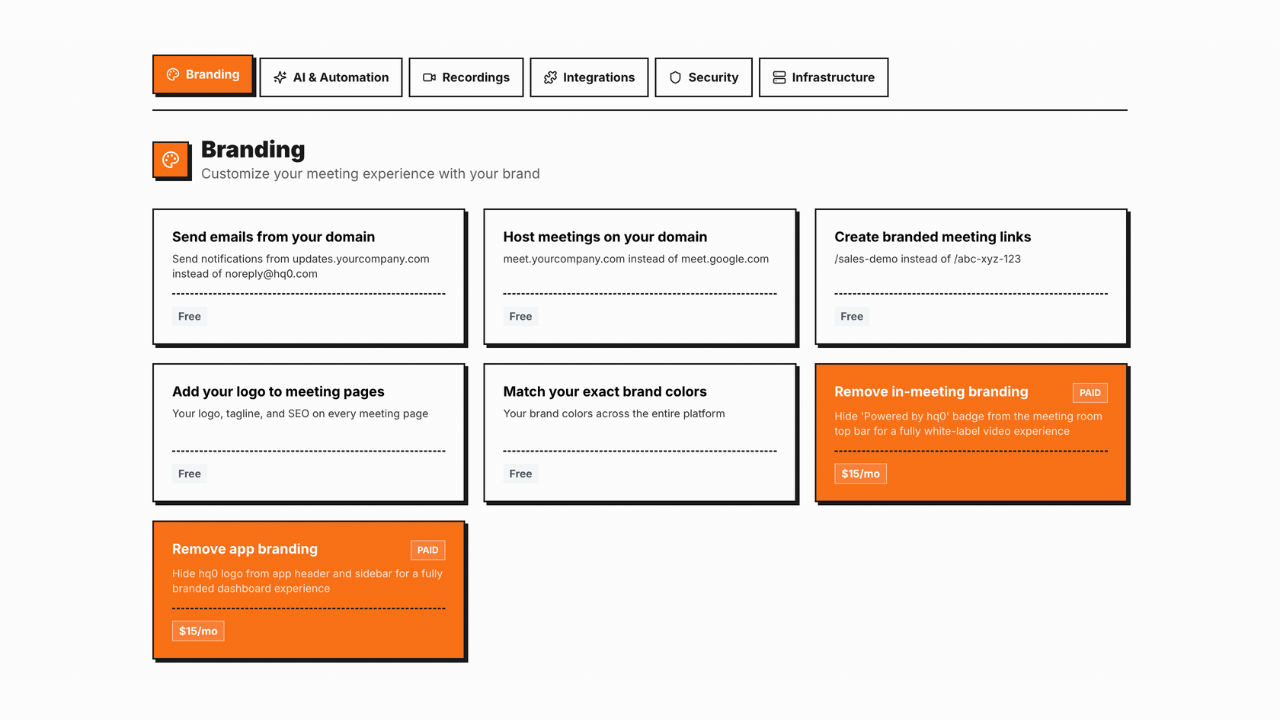 HQ0’nun bu yaklaşımını güçlendiren bir diğer unsur ise platform içinde sunulan kapsamlı özellik seti oluyor. Araç içerisinde branding, yapay zeka ve otomasyon, kayıtlar, paylaşılabilir çalışma alanları ve erişim kontrolleri dahil olmak üzere toplamda 14 farklı güçlü özellik yer alıyor. Bu yapı sayesinde şirketler toplantı deneyimini kendi marka kimliklerine göre özelleştirebiliyor ve kurumsal bir görünüm elde edebiliyor. Yapay zeka ve otomasyon tarafı, toplantı öncesi hazırlıkların kolaylaştırılmasını, toplantı sonrası özetlerin ve aksiyonların otomatik olarak oluşturulmasını mümkün kılıyor. Kayıt ve dokümantasyon özellikleri ise yapılan görüşmelerin kurumsal hafızaya dönüşmesini sağlıyor ve ekiplerin geçmiş kararları daha kolay takip edebilmesine imkan tanıyor. Bu özellikler, HQ0’yu yalnızca bir toplantı aracı değil, şirket içi operasyonları destekleyen kapsamlı bir çalışma platformu haline de getiriyor. Ancak, bu özelliklerin bazılarının ücretli olduğunu belirtmekte fayda var.