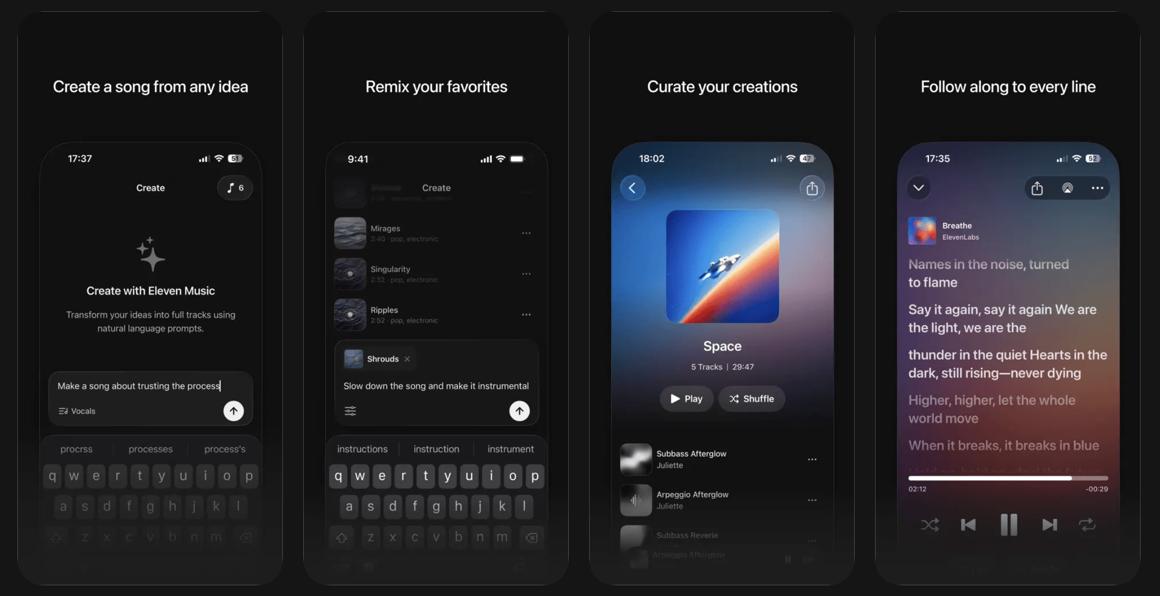 Ses üretimi alanındaki yapay zeka çalışmalarıyla öne çıkan ElevenLabs, metinden müzik üretimi yapabilen ElevenMusic adlı yeni uygulamasını kullanıma açtı. Uygulama, kullanıcıların yalnızca birkaç cümlelik metin yazarak şarkı oluşturmasına imkan tanıyor. Kullanıcılar; müziğin türünü, temposunu, ruh halini ve kullanılacak enstrümanları metin komutlarıyla tarif edebiliyor.