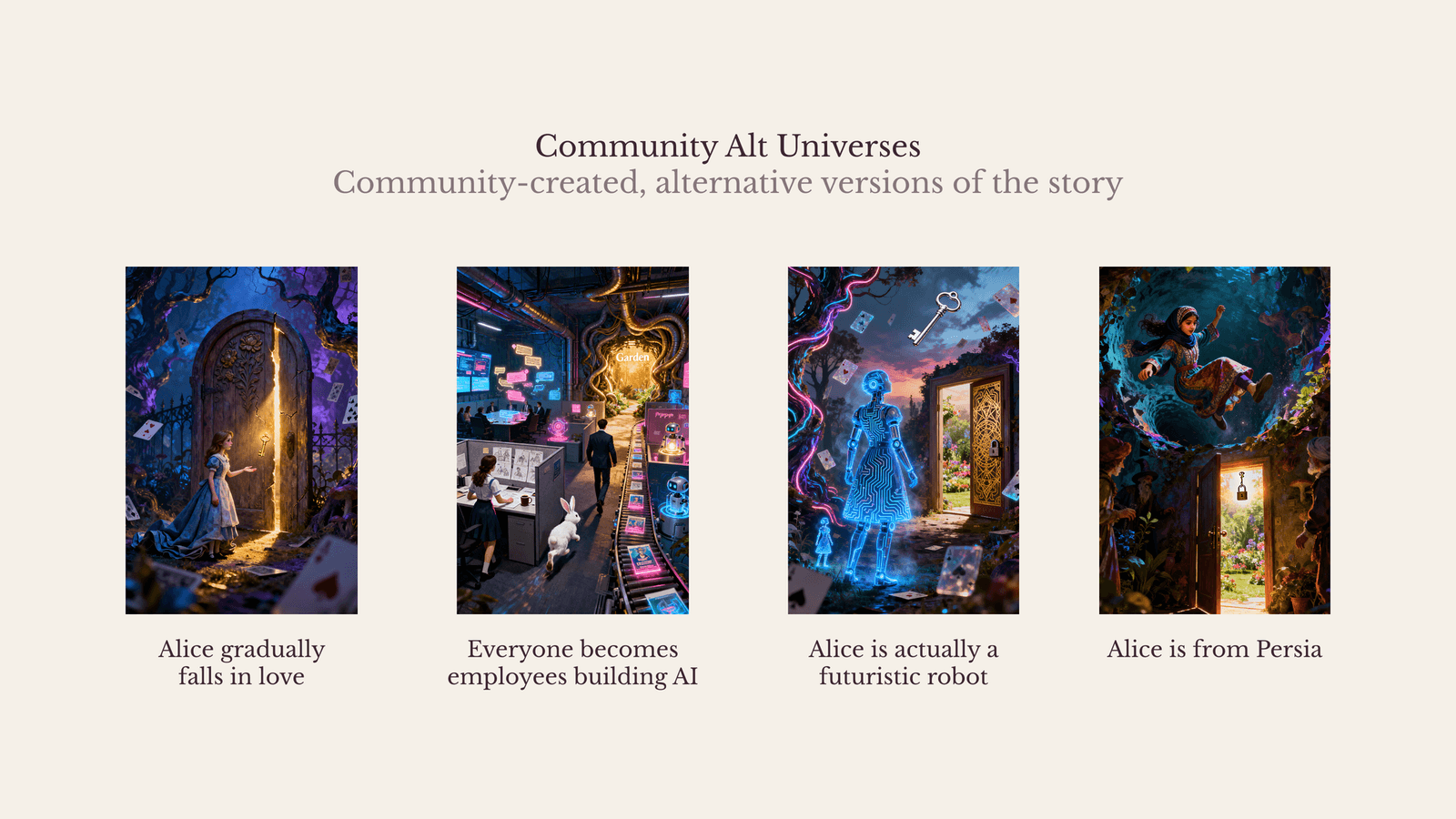 Books sayesinde kullanıcılar, kendilerini doğrudan hikayenin içine yerleştirerek bu eserleri oynayabilecek. Kullanıcılar, metindeki mevcut karakterleri canlandırmayı seçebileceği gibi kendi kişiliklerini yaratmayı da tercih edebilir. Bu adımın ardından kullanıcılar, çeşitli modlar aracılığıyla hikayede ilerleyebilir. “Kitap akışı” modu orijinal anlatı yapısını takip ederken, “senaryo dışı” seçeneği deneyimi serbest biçimli rol yapma oyununa dönüştürüyor. Böylece kullanıcılar, etkileşimleri ve sonuçları yeniden şekillendirebiliyor.