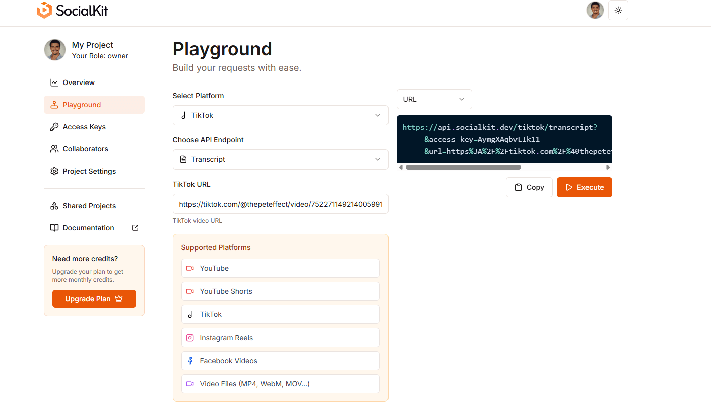 SocialKit, sosyal medya platformlarındaki video içeriklerini yapılandırılmış verilere dönüştürmeyi sağlayan bir veri çıkarma platformu olarak faaliyet gösteriyor. Girişim, geliştiriciler ve kodsuz araç kullanıcıları için hazırlanan uygulama programlama arayüzleri ile video içeriklerinden anlamlı içgörüler elde edilmesini sağlıyor. Temel amacı, YouTube, TikTok, Instagram ve Facebook gibi platformlardaki videoları manuel olarak incelemek yerine otomatize bir süreçle analiz edilebilir hale getirmek oluyor.
